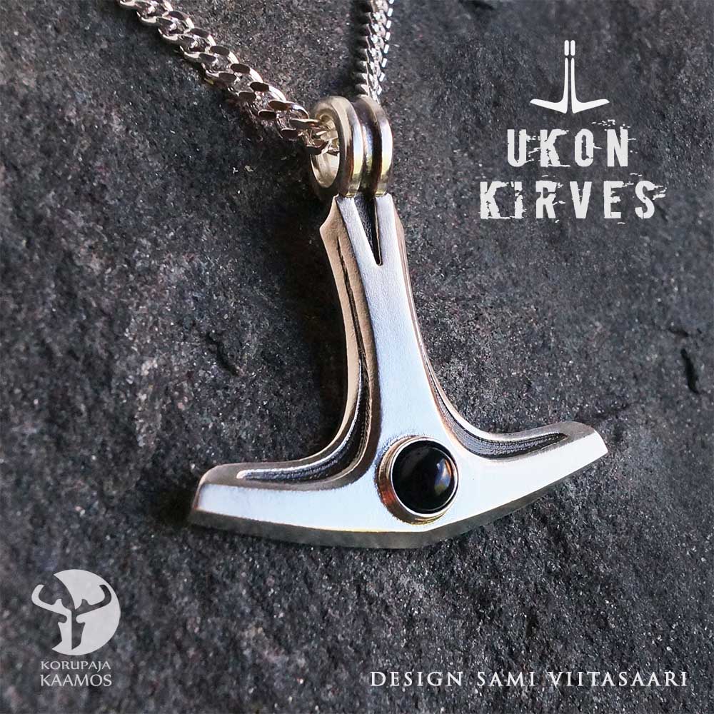 Ukonkirves / Ukonvasara - koru. Ukko Ylijumalan voimakas työkalu, joka on nyt saatavana kotimaassa valmistettuna hopeisena kaulakoruna.